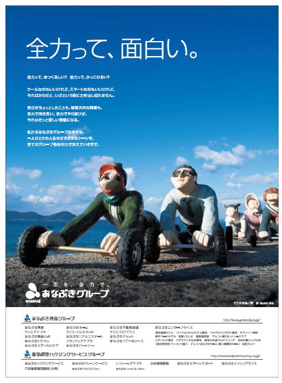 2013年の広告では『一生を、全力で。』と言うグループスローガンを、作家 岡 歩さんの作品をお借りして、あなぶきグループの大切にする”ワクワク感”などをプラスして表現しました。